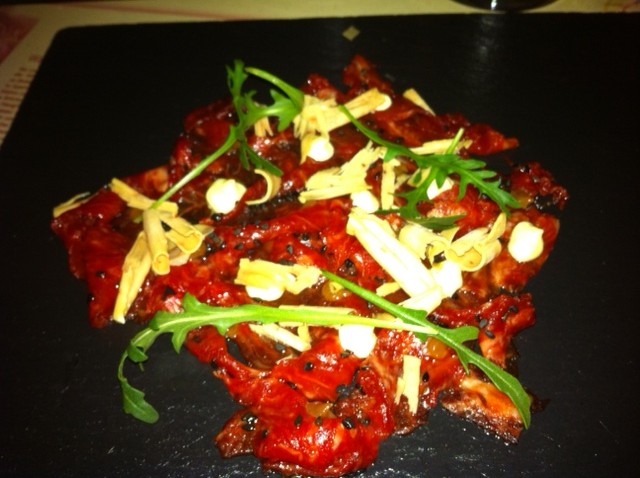 sashimi di filetto di bue con scaglie di foie gras