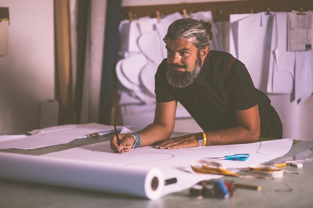 La moda mi ha sempre suscitato ammirazione ed un forte interesse, l’ho sempre vista come un mezzo di espressione di se stessi, ciò che indossiamo è ciò che siamo e dice molto di noi. Credo che sia stata la moda, in un certo senso, a scegliermi e ad accompagnarmi nel mio cammino professionale. Ho iniziato sperimentando da solo, ma poi non era più sufficiente e ho sentito il bisogno di specializzarmi, ed un giorno Vera, mia moglie, mi ha regalato un corso di modellistica e confezione (taglio e cucito) che mi ha cambiato per sempre dando inizio alla mia nuova vita.
