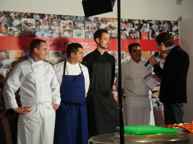 seconda manche: Nunzio Iaria del ristorante di Paolo Teverini di Bagno di Romagna, Federico Lomi aiuto di Matteo Torretta al ristorante V Piano dell’hotel Grand Visconti Palace di Milano, Alesandro Procopio del D’O di Cornaredo (Mi) e Damiano Dorati del ristorante Ca’ Vegia di Salice Terme (Pv).