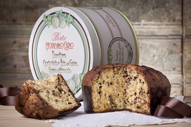 Un panettone con alle spalle una bella storia d’amore, è quello della Distilleria Berta di Mombaruzzo (At) dal cuore morbido con gocce di cioccolato fondente e gelatina di Bric del Gaian 2008, una grappa invecchiata prodotta da vinacce di uve Moscato. Una ricetta che ricorda una storia d’amore, quella nata alla corte del re di Savoia, dove una giovane pasticcera siciliana e un economo di nome Francesco Moriondo si incontrano e si innamorano. È a loro che si deve la creazione del famoso amaretto di Mombaruzzo e della storica pasticceria Moriondo Carlo, acquisita da Distillerie Berta, che produce ancora oggi questo tipico dolce alle mandorle. Fu proprio durante il trasloco che fu ritrovata la ricetta originale del panettone di Francesco Moriondo, che Berta ha studiato e riprodotto fedelmente.
