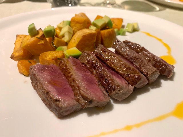agliata di roast beef, patate dolci,avocado, miso di riso, olio al profumo toscano