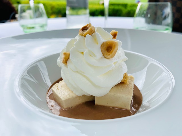 Semifreddo alla nocciola del Piemonte, salsa gianduja e sbrisolona
