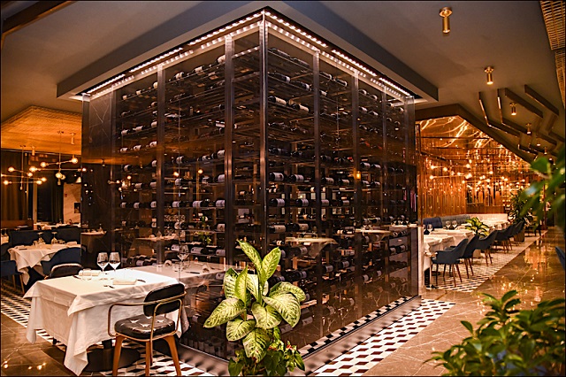 In mezzo alla sala c’è la scenografica cantina dei vini, un cubo di vetro a climatizzazione controllata, in cui sono conservate etichette provenienti da tutto il mondo, tra rossi pregiati, bollicine blasonate e piccoli produttori di eccellenze vinicole, selezionate dal sommelier Ho Tuan Minh Vaccarini. Ogni settimana Minh sceglie di proporne alcune al calice, per chi ama scoprire vini diversi in una cena senza dover acquistare più bottiglie.