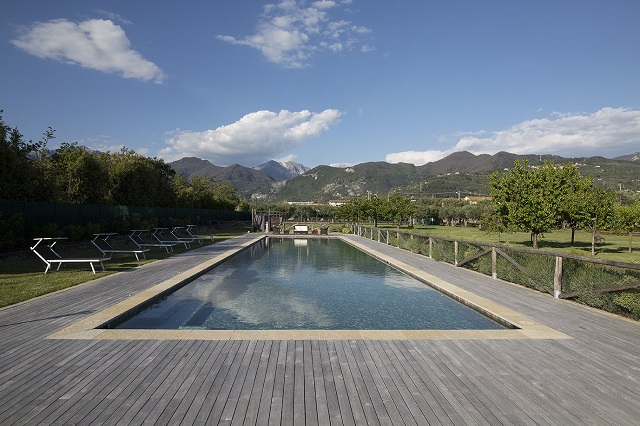Nel giardino di Olimagiò è collocata una grande piscina con idromassaggio e “musica in acqua” per trascorrere le giornate in assoluto relax, facendo il bagno e prendendo il sole, all’insegna del dolce farniente. La mattina si può prenotare “Il Saluto al Sole”, una lezione di yoga di circa 45 minuti per iniziare la giornata con un’iniezione di fiducia, calma ed energia, concentrandosi sul proprio benessere. La sessione include esercizi di respirazione, allungamento e le più semplici posizioni yoga.