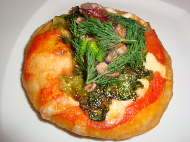 pizza fritta con tonno, scarola, agrumi, base di pomodoro e mozzarella