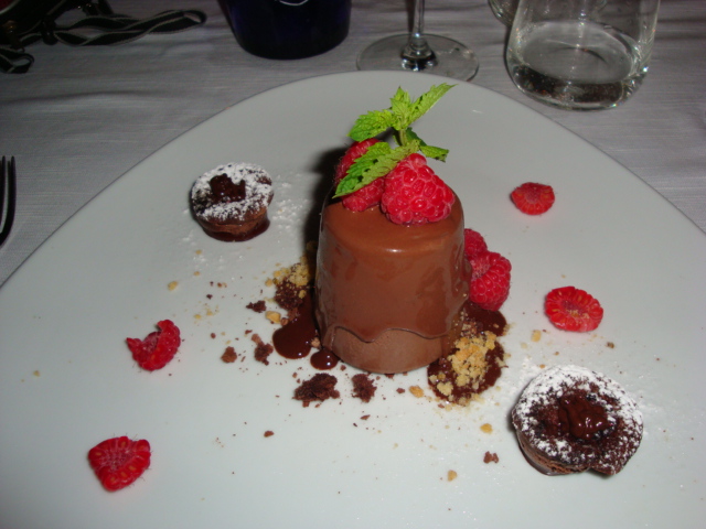 Sacher ghiacciata con composta di albicocche e lamponi freschi