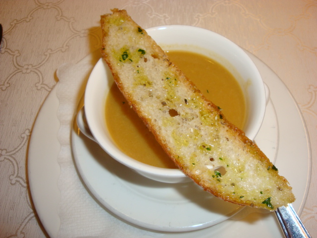 vellutata ai porcini nostrani con crostone di puccia all'aglio
