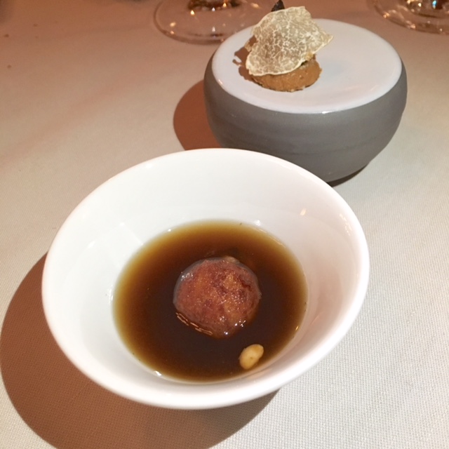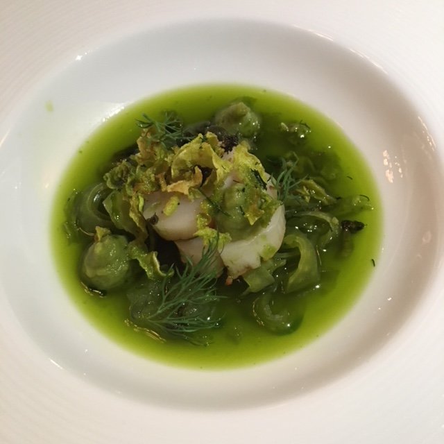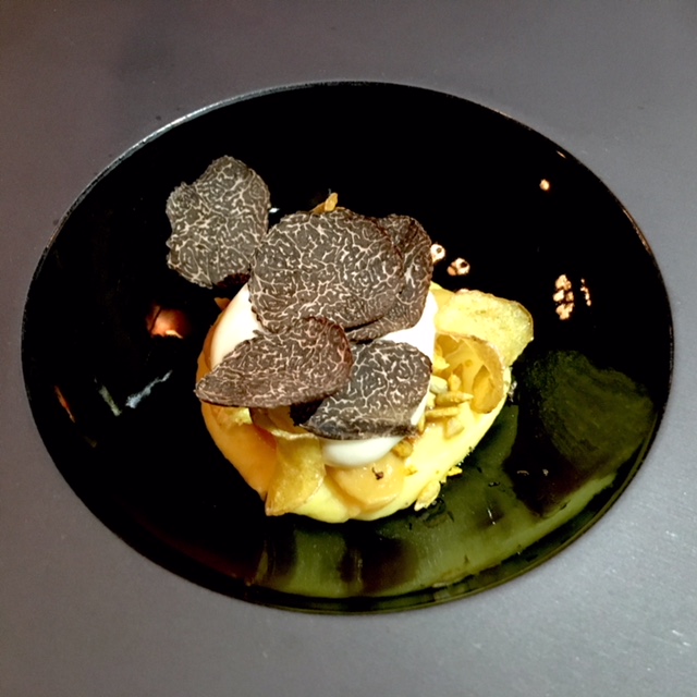 Salmon, tangerine oil, carrot tapioka, juniper miso