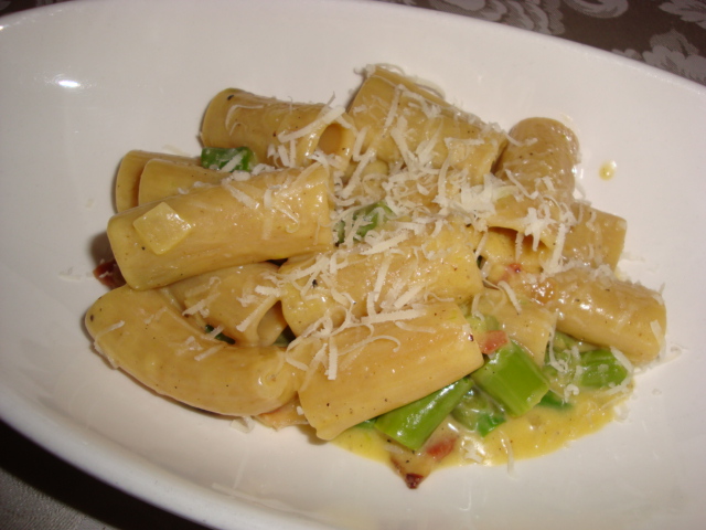 rigatoni grezzi con carbonara di asparagi