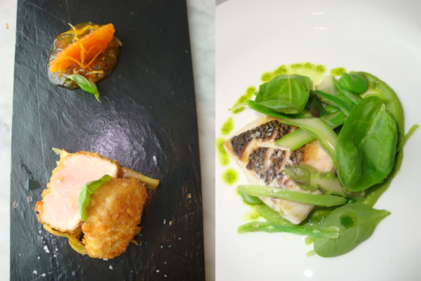 ricciola su panatura di grissini-dentice in verde