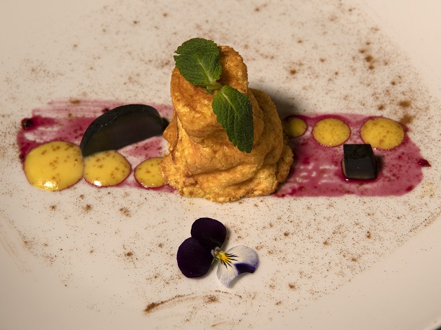 I suoi piatti abbracciano la cucina regionale italiana con proposte sia di carne che di pesce, sapientemente reinterpretate come i paccheri cacio e pepe al sapore di tartufo; tortino di polpo e patate con paté di olive nere e fiori di zucca, gnocchetti di patata dolce mantecati al burro e cannella con tartare di scampi; trecce artigianali al ragù di coniglio; petto d’anatra arrosto su crema di patate e timo, confettura di mandarini aromatizzati alla cannella e cavolo nero fritto;